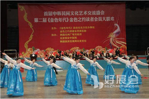 由《金色年代》雜志社主辦,北京恒安中醫院協辦的“首屆中韓民間文化交流盛會”,12月11日下午在北京航天航空大學體育館舉行,中韓兩國老人在活動現場將健康歡樂進行到底。