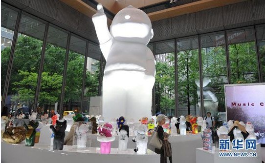 5月15日,日本東京,觀眾觀看香港、日本創意家以“天天向上”為主題的創意雕塑作品。當天,為慶祝中國香港特別行政區成立15周年,由香港特別行政區東京經濟貿易代表部主辦的“天天向上”創意雕塑展在東京舉行。展覽以香港藝術家榮念曾創作的5米高“天天向上”創意毛坯雕塑為主題,并展示了來自中國香港和日本的藝術家在毛坯雕塑上繪制的不同表情和服飾的130件作品。(來源:新華網)