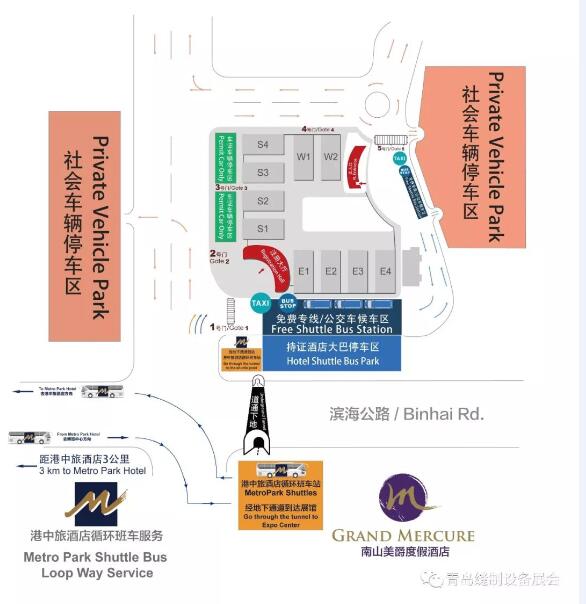 青島國際博覽中心公交線路眾多,展館四通八達,展館外圍設立兩處停車場。