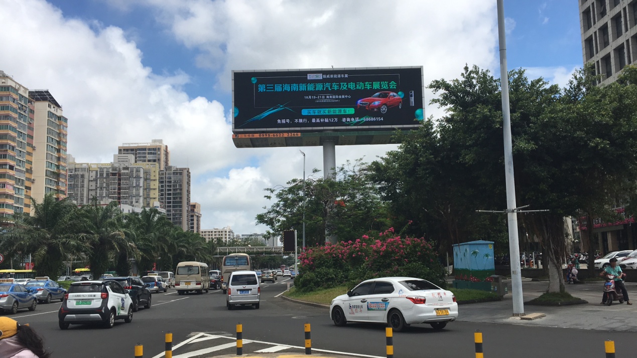 海口市龍昆南路臺(tái)灣大廈前的第三屆海南新能源車展LED廣告
