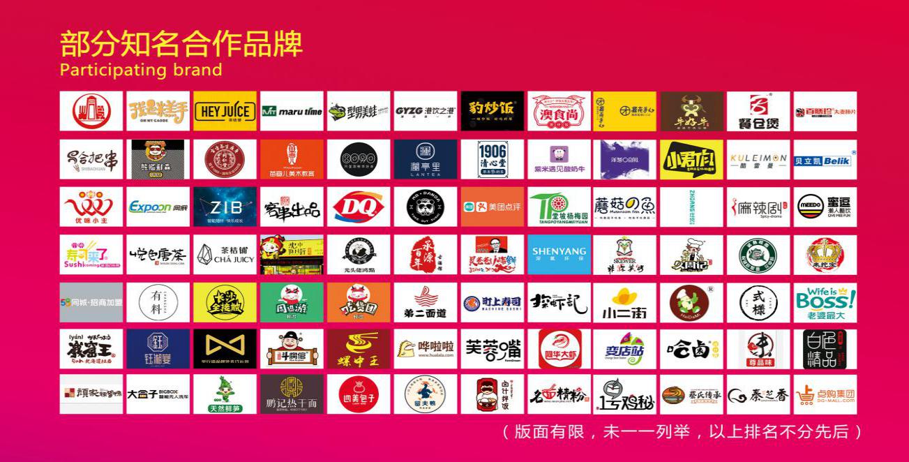 本屆參會企業(yè)涉及:餐飲食品、商品零售、服裝服飾、教育培訓、嬰童用品、保健美容、商業(yè)服務(wù)、漁業(yè)水產(chǎn)等八大板塊?;饘m殿、我是糕手、白色精品、麥如披薩、斗腐倌、思益味、烤骨精、源源烤雞、型男美蛙、澳食尚煲仔飯、鈺湘宴、巖窟王北海道拉面、茶桔便、港飲之港、同仁堂等近200個連鎖加盟品牌入駐。11月23-25日,等你加入這場年終加盟創(chuàng)業(yè)投資盛典,圓老板夢想,成為自我人生的價值主宰。
