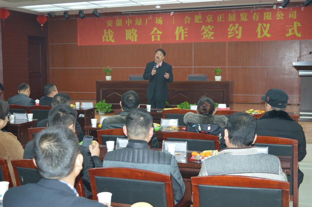安徽中綠廣場管理有限公司總經理孫序躍孫總開場致辭,向到場所有嘉賓們詳細說明此次與合肥京正展覽有限公司的戰略合作事項。孫總說,中綠廣場在安徽孕嬰童市場有著重要地位,此次合作的目標就是在2-3年間將中綠廣場打造為安徽省航母級嬰童交易中心。