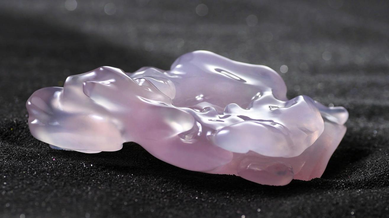 化境系列,意在還原翡翠中自然天成的美感。結合其質,形,色,意,以流暢的線條,呈現玉石雅致清逸,意境空明的天然之美。該系列作品造型抽象,在純凈靈透中展現空靈寂靜之美。在清心自由的狀態中,加以想象,感知,它或是水,是魚,是舞者,是一切生靈……成萬物之法變,應無所住而通其心,遂漸入佳境。