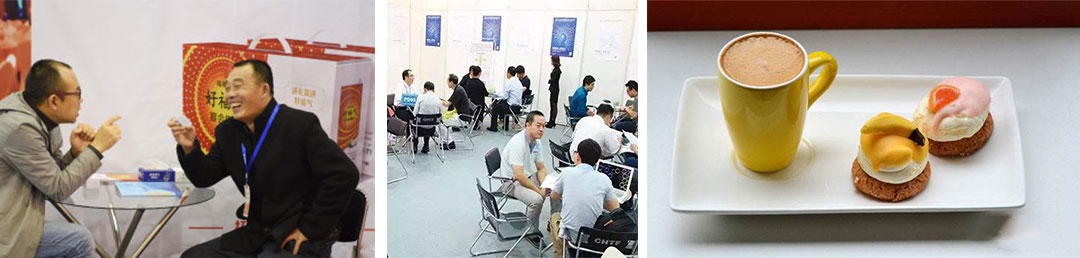 一、在展會現場設置了舒適的VIP洽談室,洽談室中配備了沙發、茶水飲料、甜品蛋糕等服務,成功預約配對的展商和觀眾可在洽談室中進行愉悅的商務洽談。