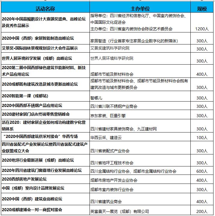 2020成都建博會(huì)八月開展,參展品牌、活動(dòng)、參觀團(tuán)搶先看