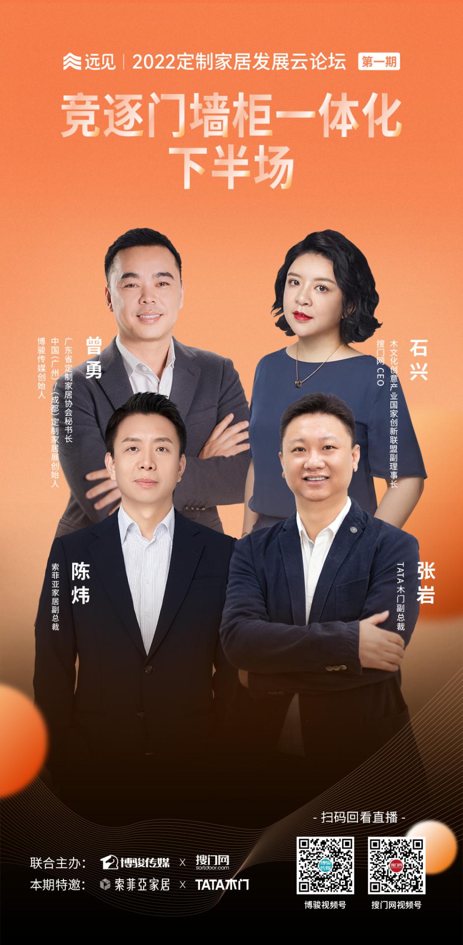 5月23日,博駿傳媒聯(lián)合搜門網(wǎng)舉辦“遠見·2022定制家居發(fā)展云論壇”,首期聚焦 “整家一體定制”和“門墻柜一體化”話題,邀請定制和木門行業(yè)的領軍企業(yè)代表——索菲亞、TATA木門進行對話。