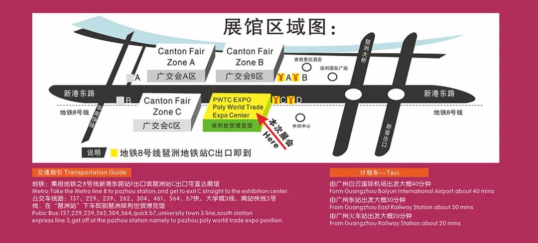 或者導航“保利世貿博覽館”“琶洲地鐵站C出口”均可