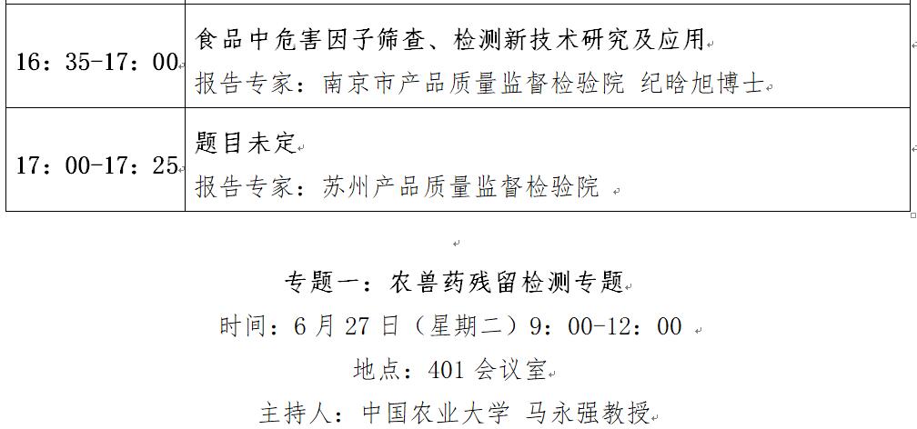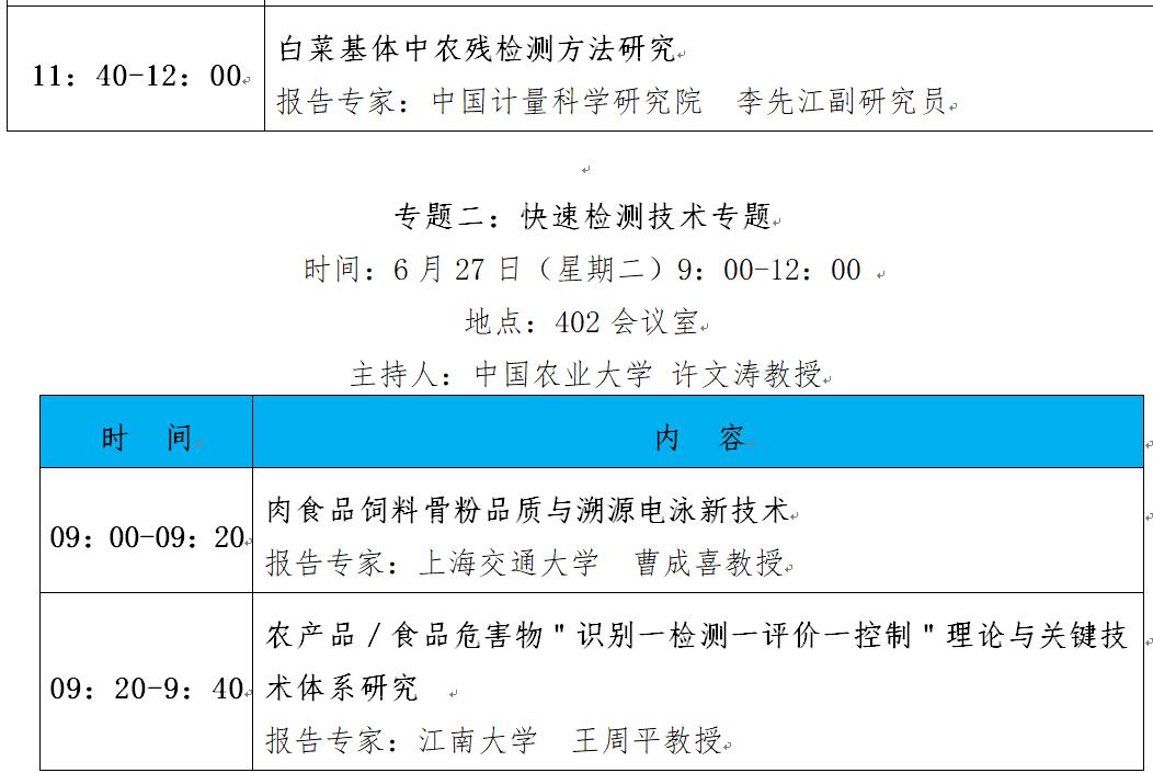 “第十二屆中國食品與農產品安全檢測技術與質量控制國際論壇”大會日程表