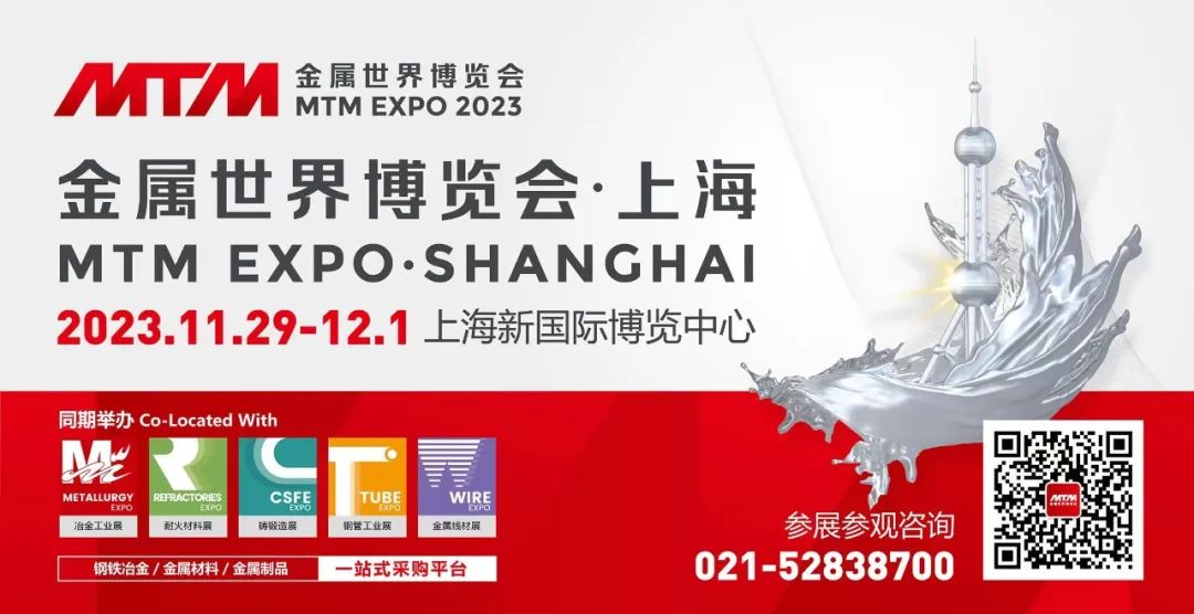 時(shí)隔兩年,鋼鐵冶金行業(yè)盛會(huì) ——2023MTM金屬世界博覽會(huì)回歸上海,將于11月29日至12月1日在上海新國(guó)際博覽中心隆重召開(kāi)。