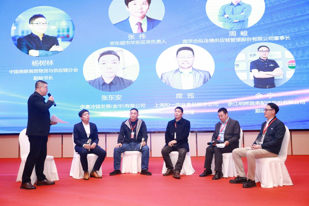 上午的高端對話環節圍繞“安全與標準體系建設助力預制菜產業高質量發展”展開,在中國商業聯合會商貿物流與供應鏈分會副秘書長楊樹林的主持下,京東超市華東區采負責人張偉、南京合縱連橫供應鏈管理股份有限公司董事長周峻、供富冷鏈發展(金華)有限公司副總經理張東安、上海和一肉業食品股份公司總經理席筠、浙江明輝蔬果配送股份有限公司副總經理余寧分別為大家帶來了精彩的內容分享。