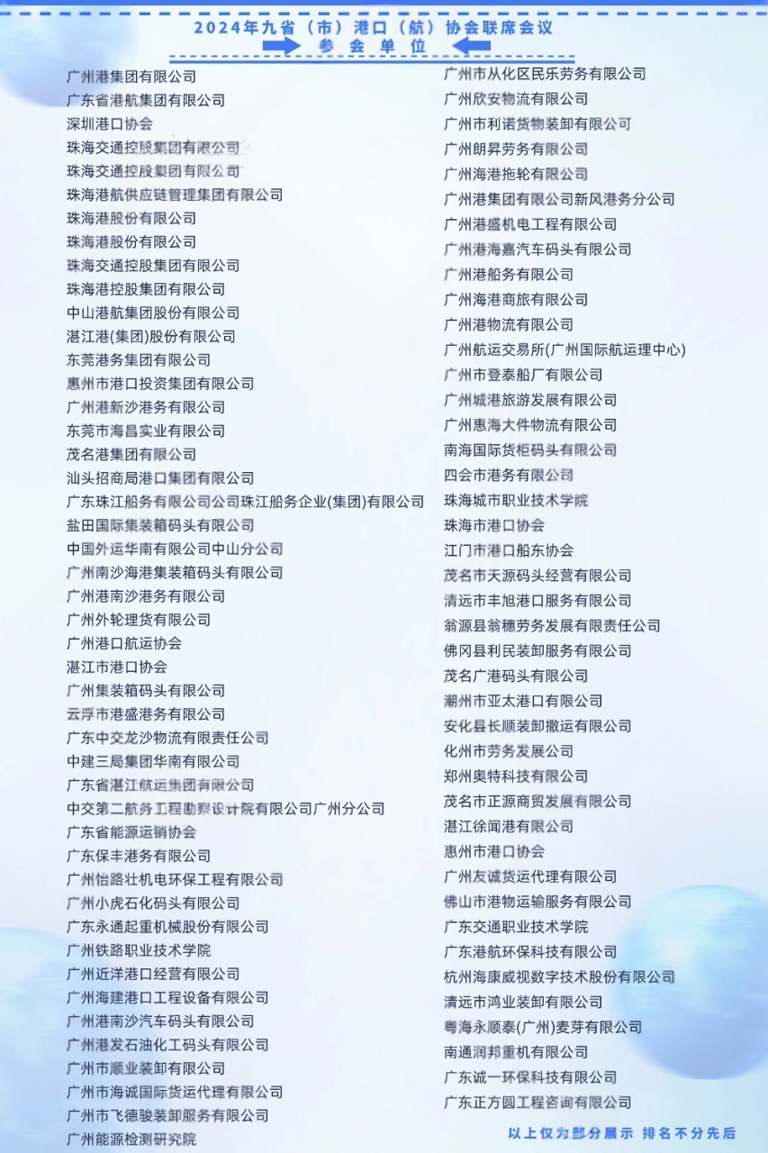 回顧歷屆輝煌,我們對2025年九省(市)港口(航)協(xié)會聯(lián)席會議充滿期待。相信在各方的共同努力下,此次會議將進一步發(fā)揮行業(yè)協(xié)會的“橋梁紐帶”作用,強化“服務國家、服務行業(yè)、服務會員”職能,為構建現(xiàn)代化航運體系添磚加瓦。在此,誠邀港口(航)行業(yè)的各界人士積極參與,讓我們攜手共進,共繪港口(航)業(yè)發(fā)展的美好藍圖,奮力書寫交通強國建設的港口篇章!