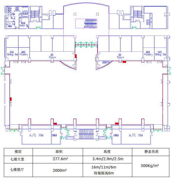 承重:1層展廳1500kg/㎡;3層和7層展廳500kg/m2 4層展廳1000kg/m2